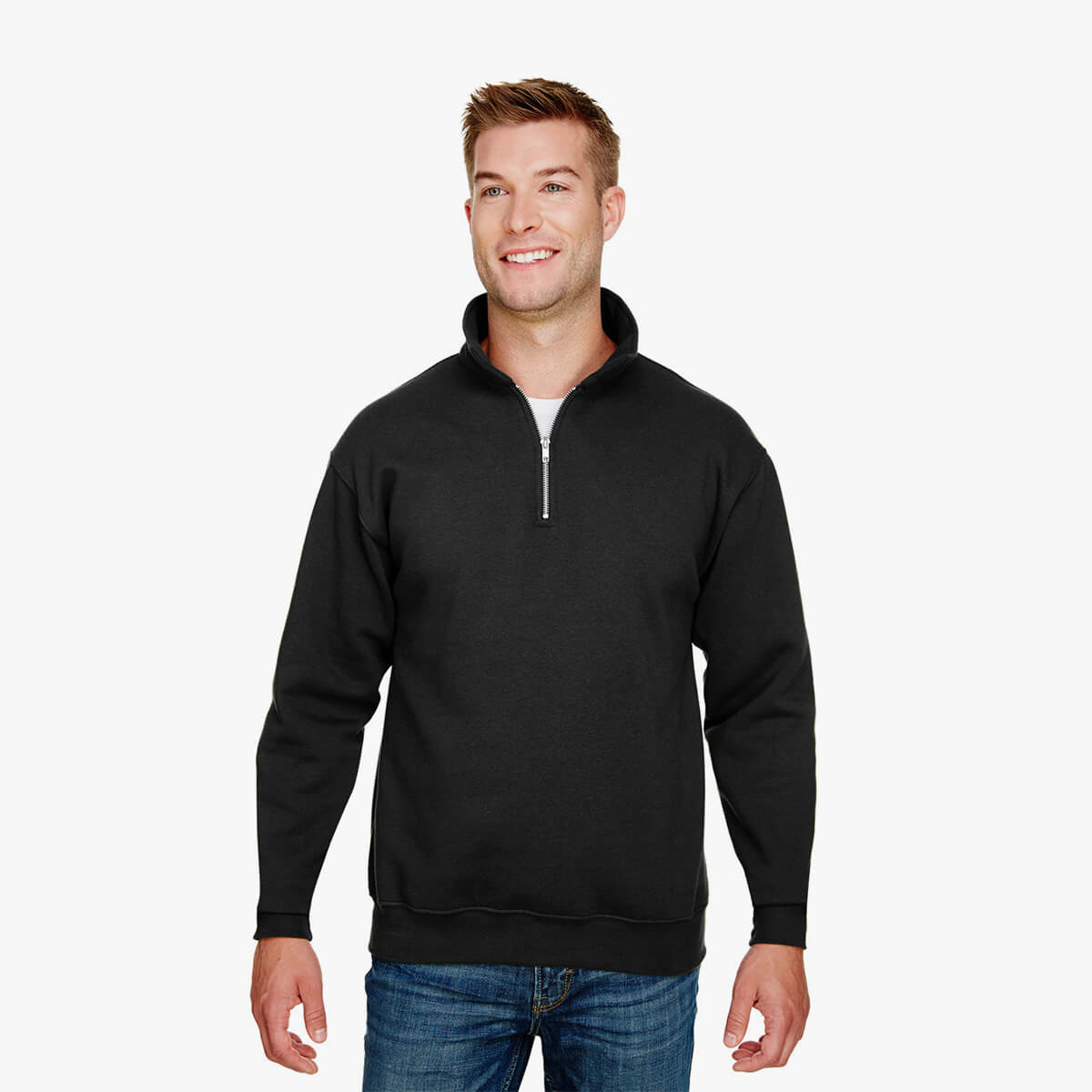 It is the middle ground of the fashion world. Not quite a hoodie, definitely not a blazer, the quarter zip pullover sweatshirt has become the unofficial uniform of everyone from Silicon Valley developers to weekend hikers. You see them everywhere. At the airport. In the grocery store. On your boss during a Zoom call. Honestly, it’s a weirdly specific garment that shouldn’t work as well as it does, but here we are. It bridges that awkward gap between "I just rolled out of bed" and "I’m trying to be a professional human being."