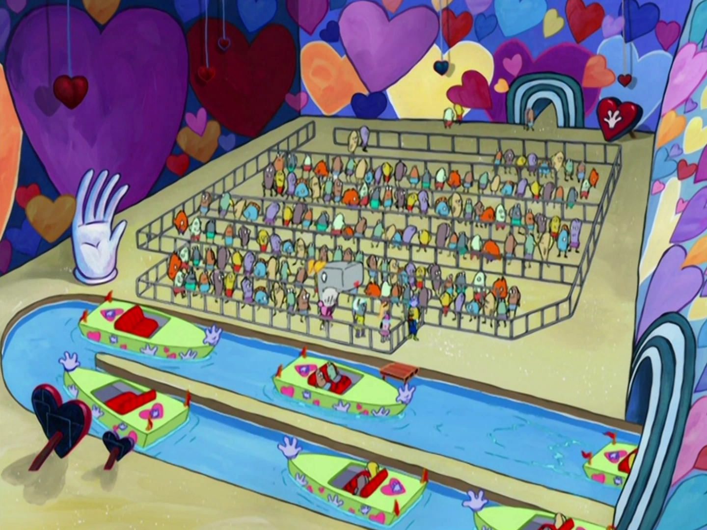 You’ve got to appreciate the animation style in this era of the show. While some fans find Season 7 a bit "off" compared to the Hillenburg golden years, the facial expressions in this episode are top-tier. The animators leaned hard into the grotesque. When the ride's "Sweethearts" turn into malfunctioning robots with glowing eyes, it’s actually kind of unsettling.