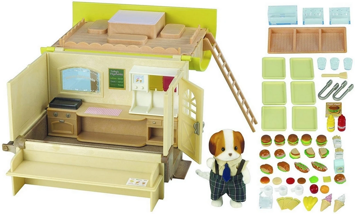 You aren't just getting the van. That’s the mistake people make when they look at the price tag. You’re getting a whole business in a box. It comes with over 30 accessories. We’re talking about tiny burger wrappers, menus, a visor for the "chef," and even little trays that clip onto the side of the wagon so your critters can eat "outside."